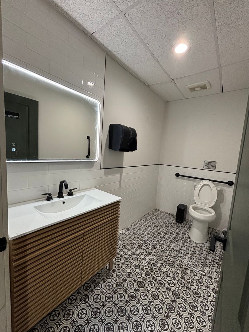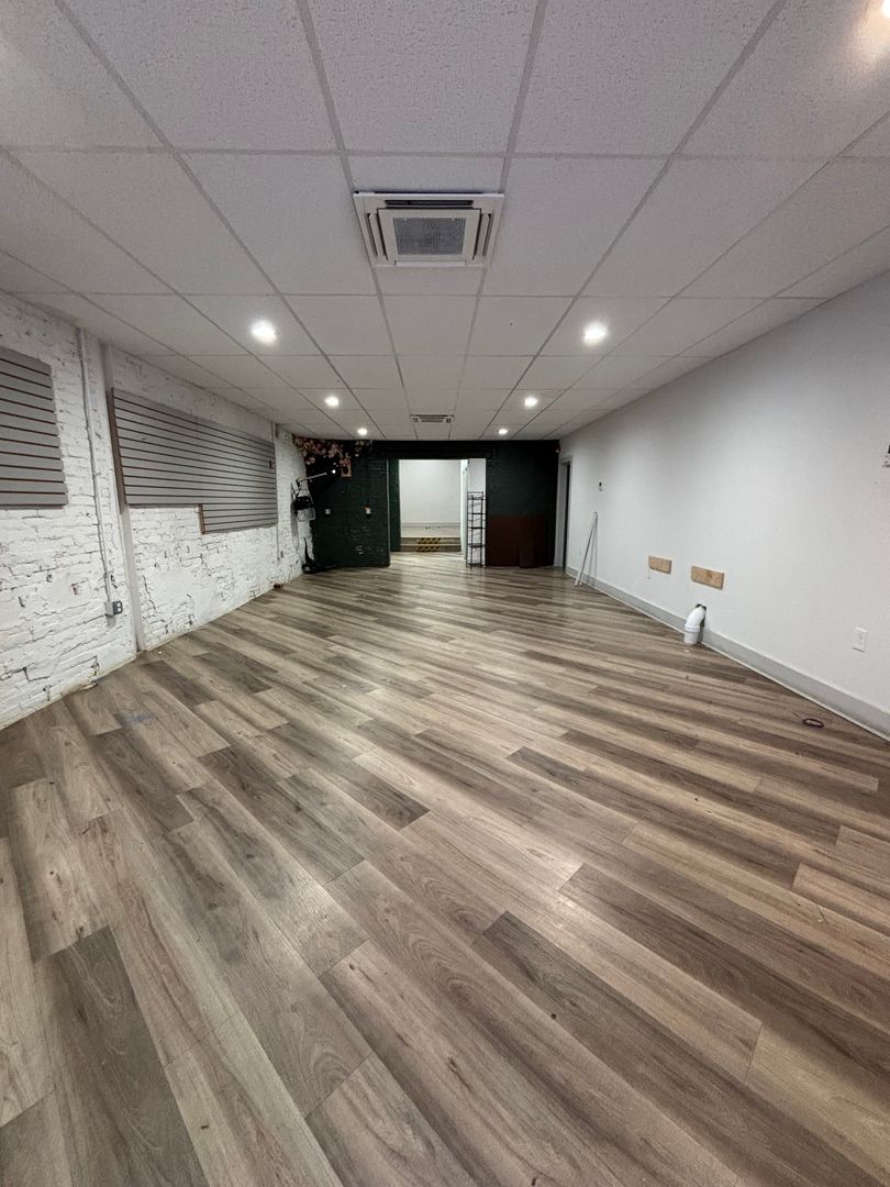 Flexible floor plan suited for retail, wellness, food service, or showroom use